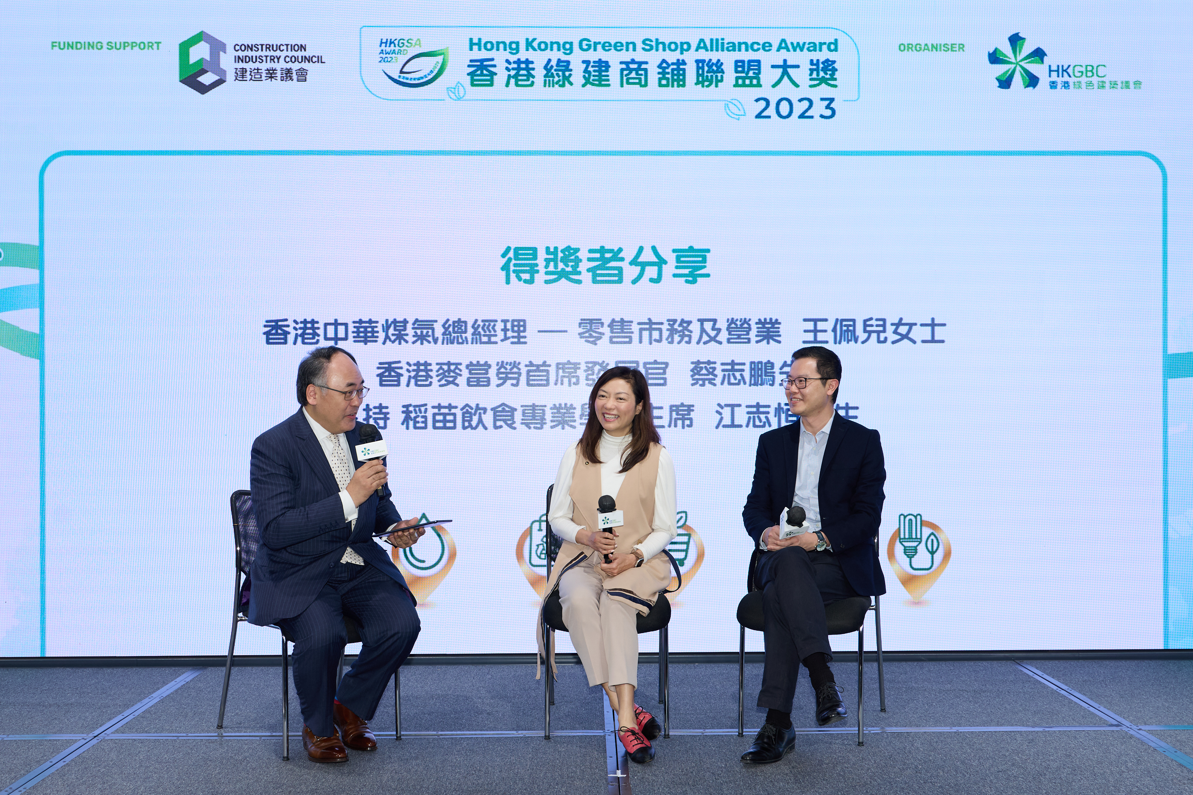 To promote best practice sharing among industry practitioners, Mr Maurice KONG, Director of the Institute of Dining Professionals, and Ir Dr Cary CHAN, JP, Executive Director of the HKGBC facilitated two insightful sharing sessions with representatives from the winning shopping malls and shops. The sessions covered discussion on the operation of green dining, the environmental measures in green malls and the meaningful green collaborations between the mall and its tenant.